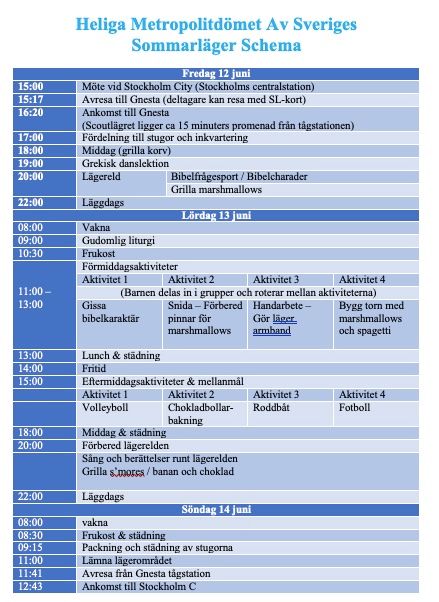 Heliga Metropolen av Sveriges sommarläger
