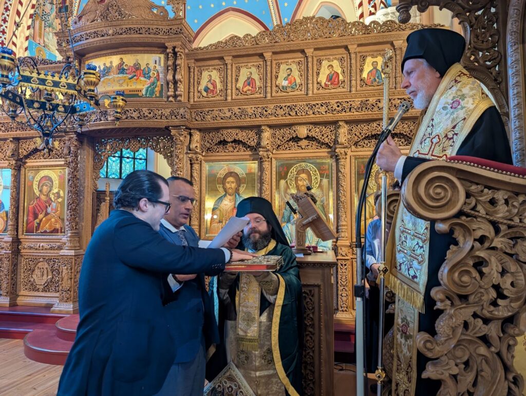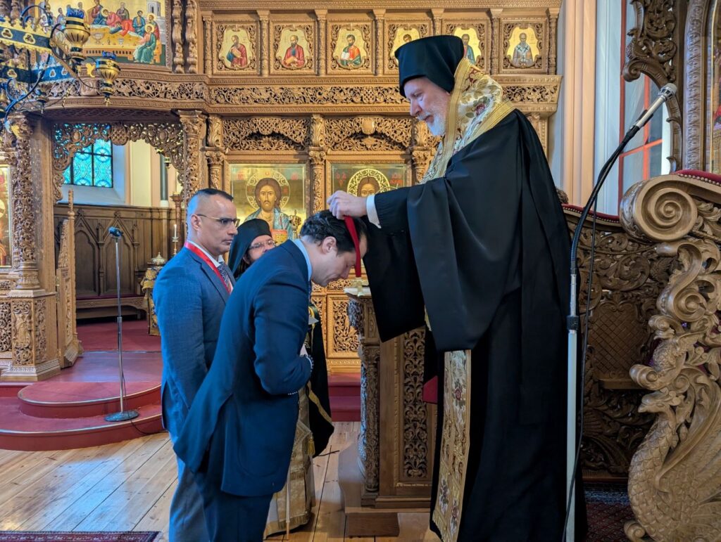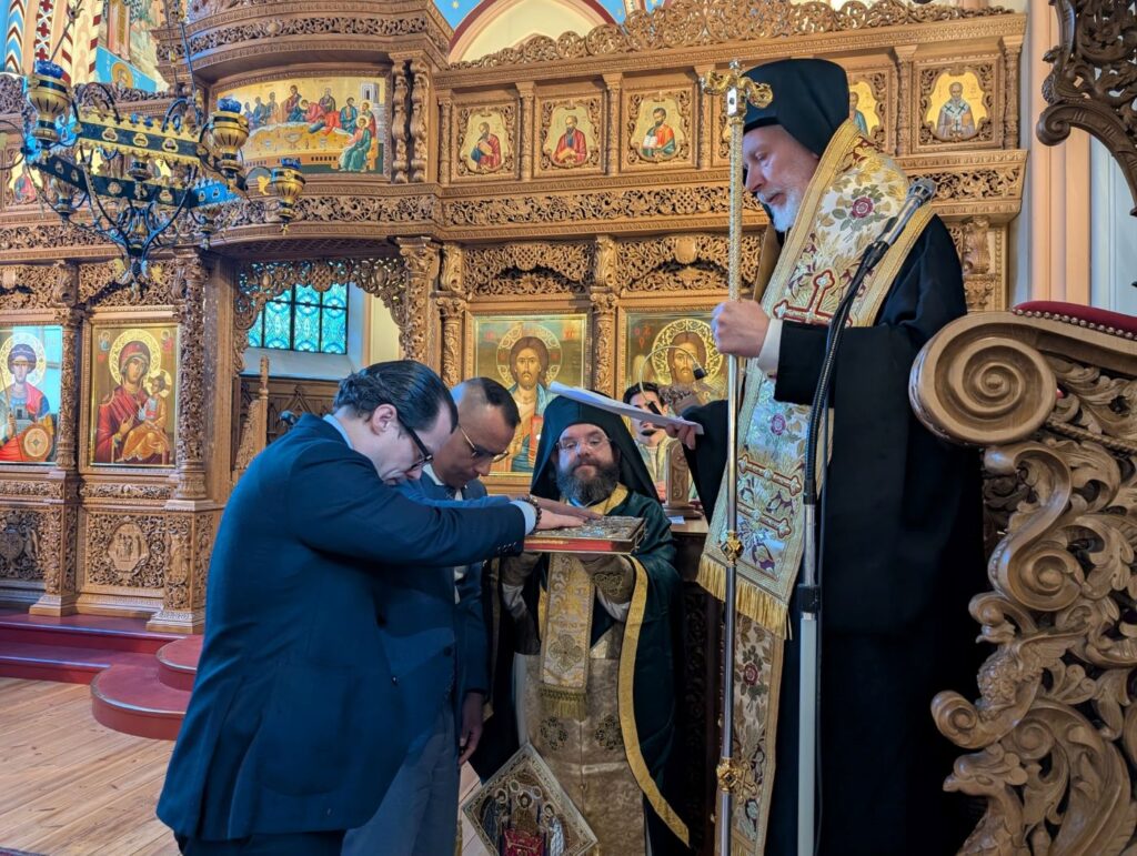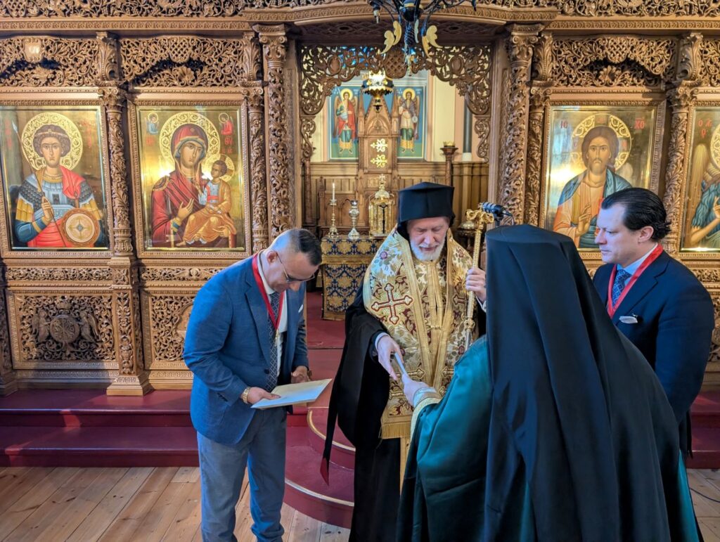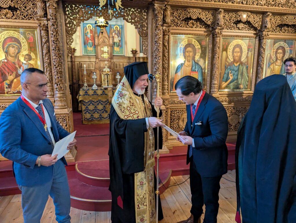 He responded gladly, and by his personal Patriarchal will and benevolence, today confers through me upon Mr. Rafail Poumeyrau the office of Archon Nomophylax, and upon Mr. Fredrik Styrlander the office of Archon Ekdikos, together with the corresponding Patriarchal diplomas and insignia.
