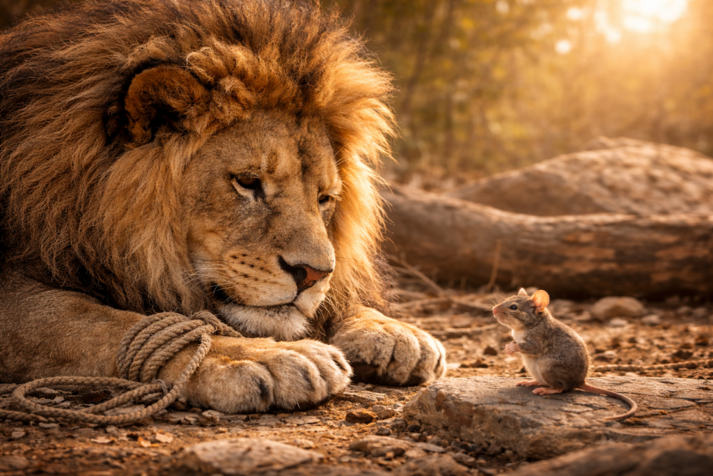 e) The Lion and the Mouse – Mercy and Humility