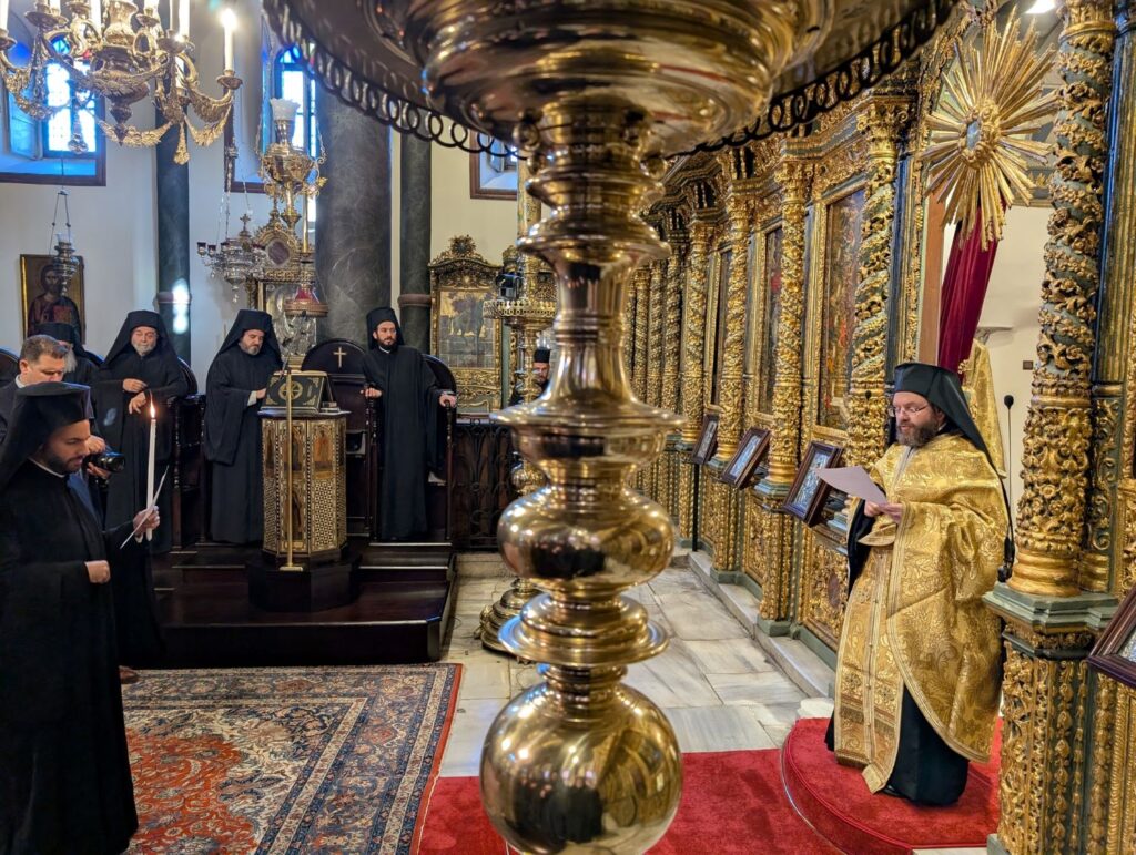 Subsequently, His Grace the Bishop-elect of Elaia descended with the Members of the Holy and Sacred Synod to the All-Venerable Patriarchal Church of Saint George the Great Martyr, where, according to canonical order, the Great Message (Mega Menyma) was celebrated. He then received the congratulations of the holy hierarchs and the members of the Patriarchal Court.